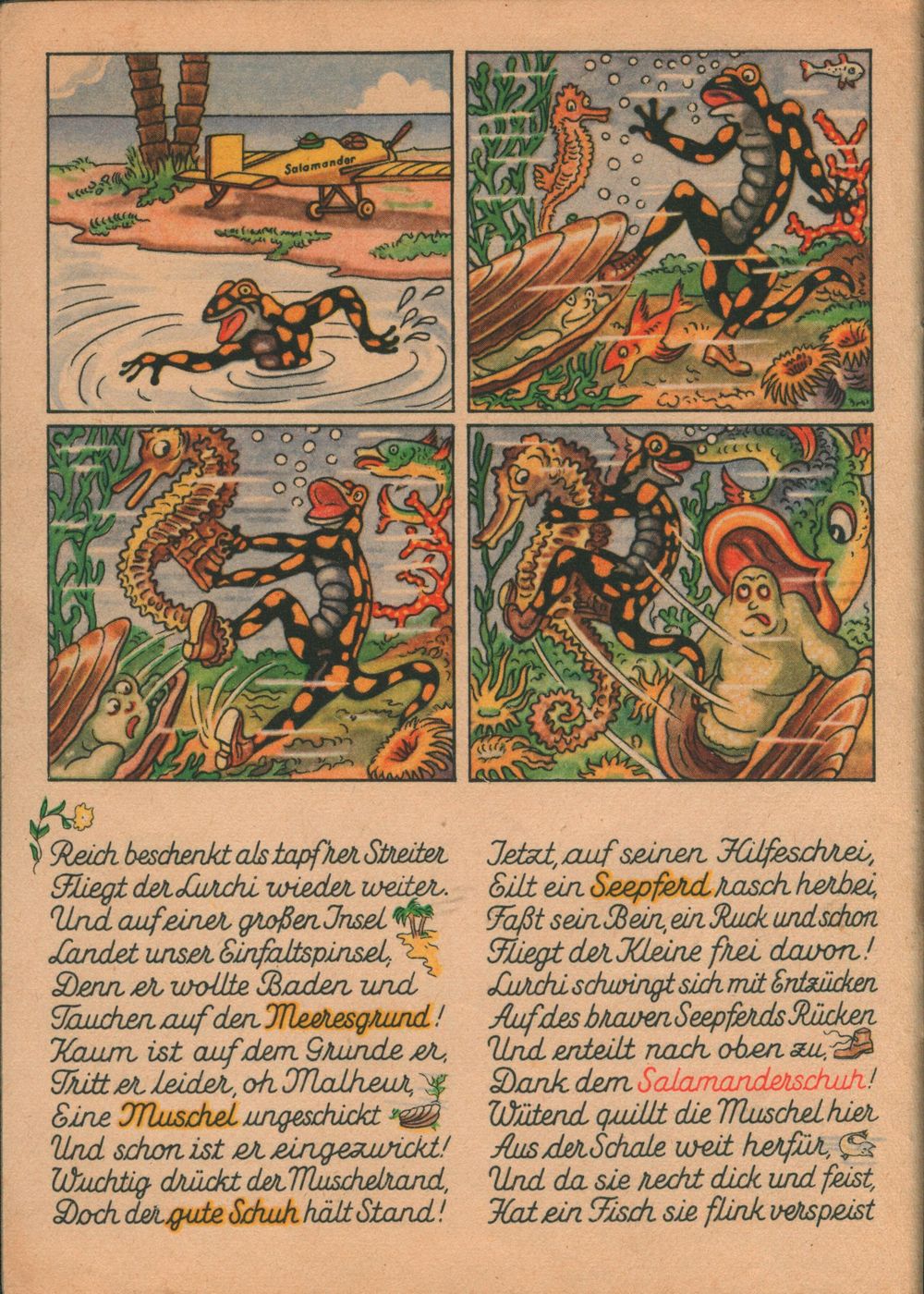 Luchis Abenteuer das lustige Salamanderbuch 4. Teil von 1958 hat nur 8 Seiten. Die 4. Seite wurde hier als 6. Seite eingefügt. 4. Teil von 1938 4. Teil von 1952 4. Teil von 1958