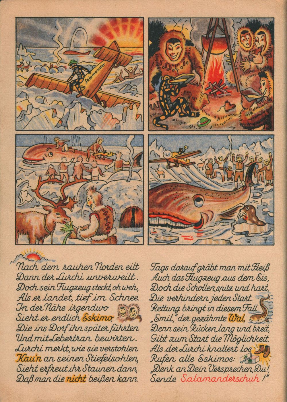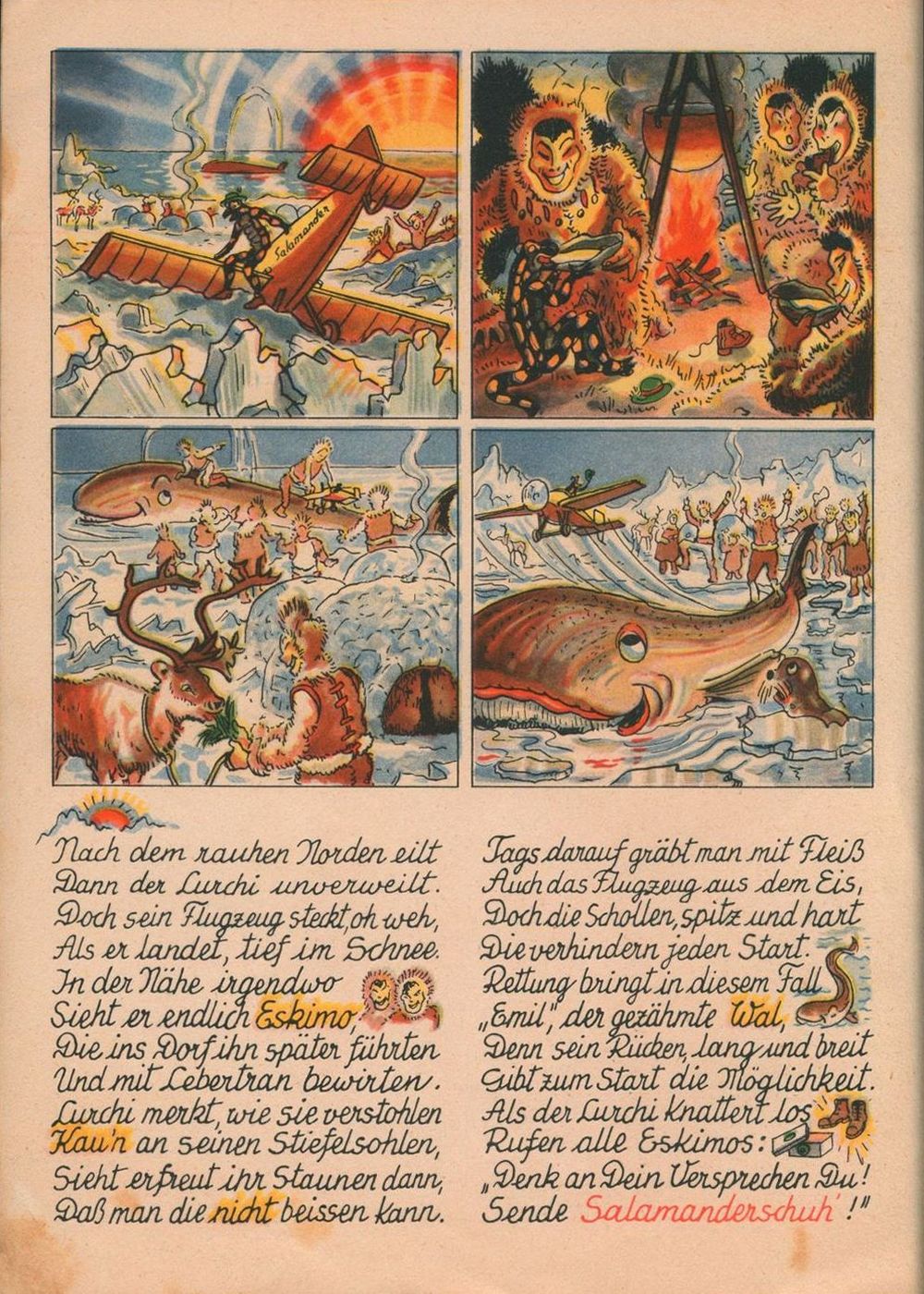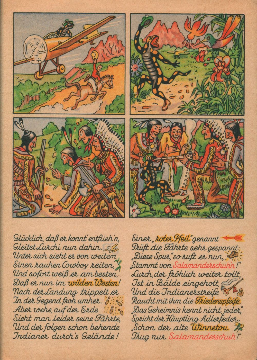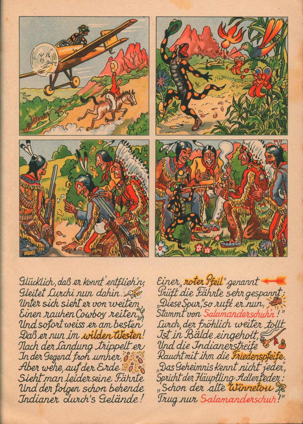 Luchis Abenteuer das lustige Salamanderbuch 4. Teil von 1958 hat nur 8 Seiten. Die 4. Seite wurde hier als 6. Seite eingefügt. 4. Teil von 1938 4. Teil von 1952 4. Teil von 1958