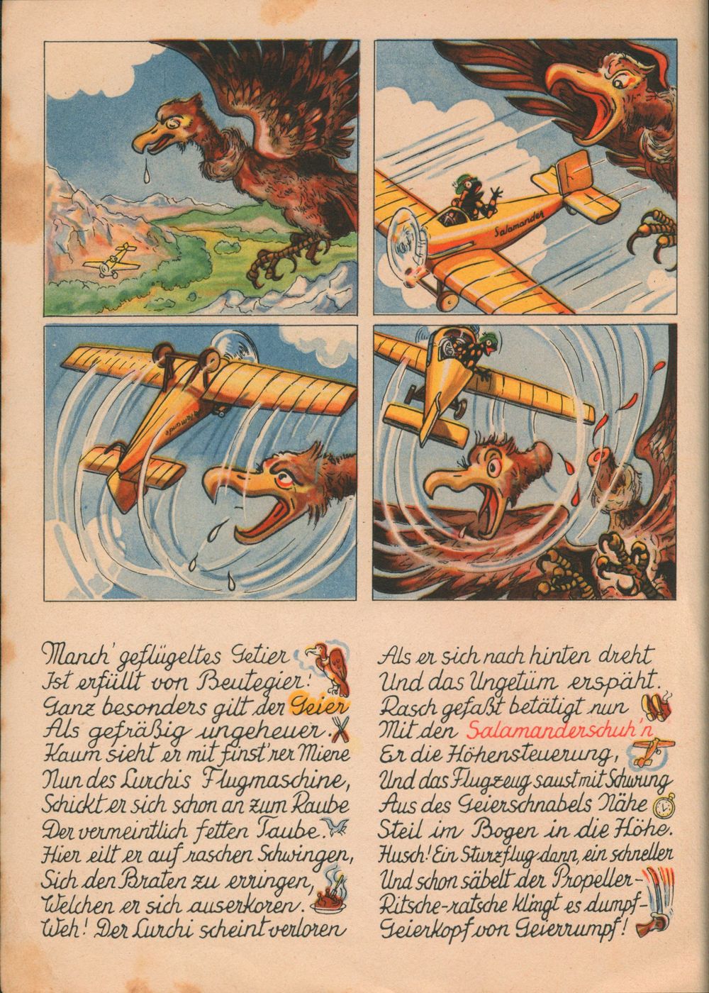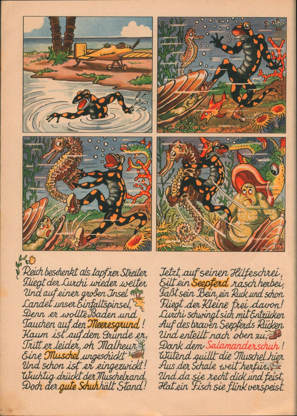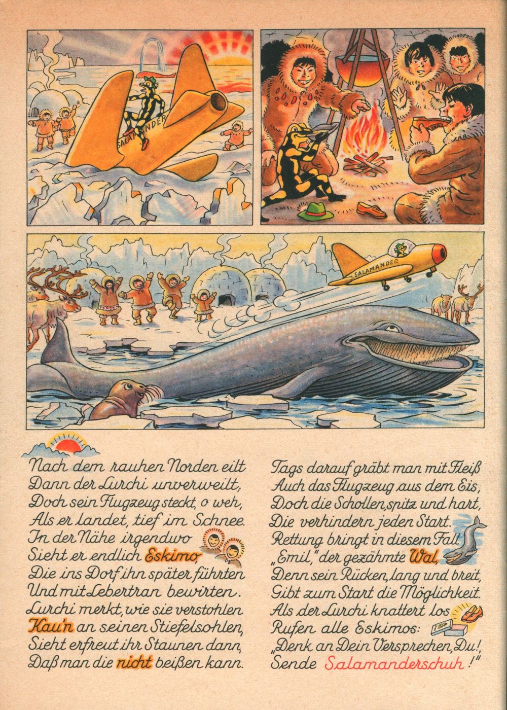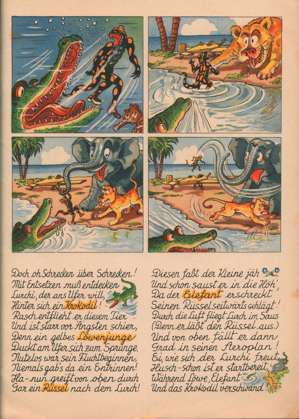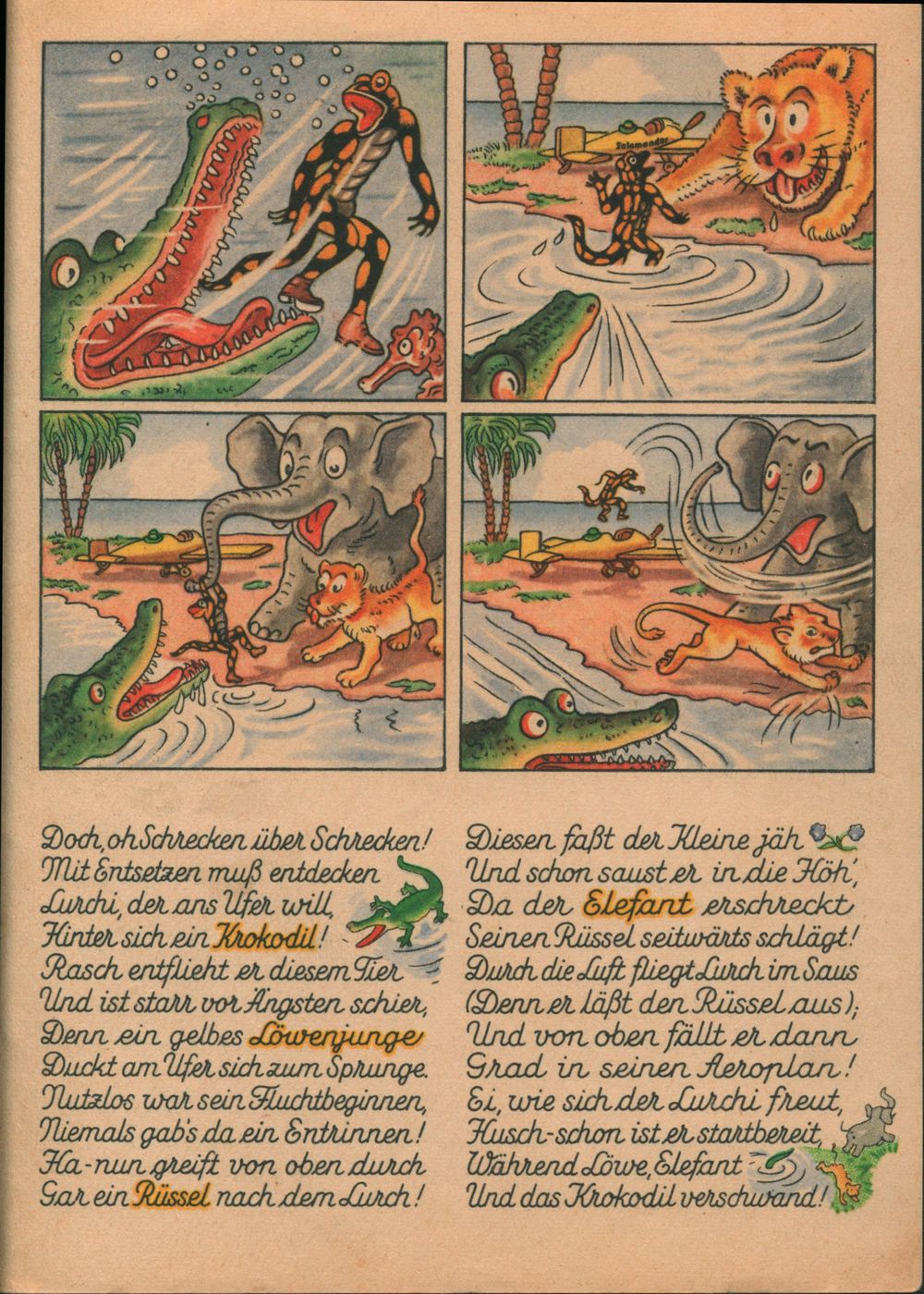 Luchis Abenteuer das lustige Salamanderbuch 4. Teil von 1958 hat nur 8 Seiten. Die 4. Seite wurde hier als 6. Seite eingefügt. 4. Teil von 1938 4. Teil von 1952 4. Teil von 1958
